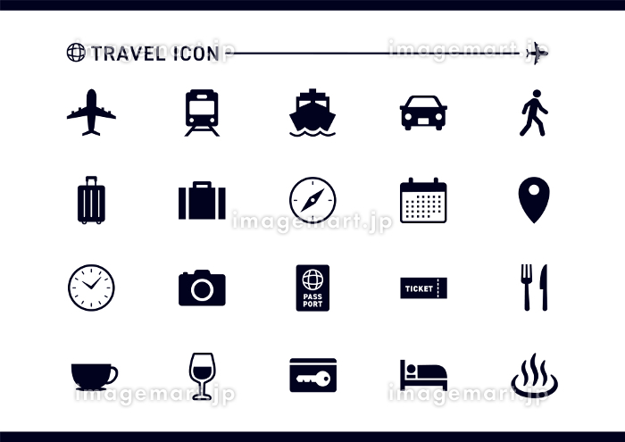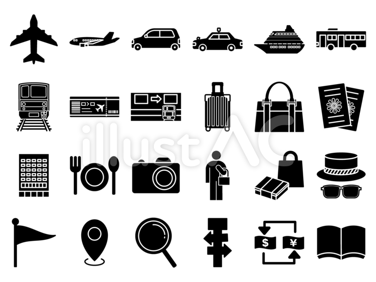 旅行アイコン_シルエット_モノクロのイラスト素材185072131 毎月1点無料 フリー のストックフォト イメージマート。