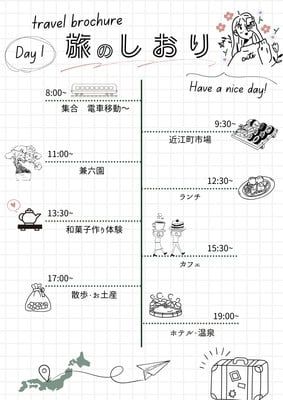 A4横型・シンプルで見やすい「旅行行程表」の無料テンプレート!2泊3日の社員旅行や修学旅行におすすめ!可愛いだらけ。