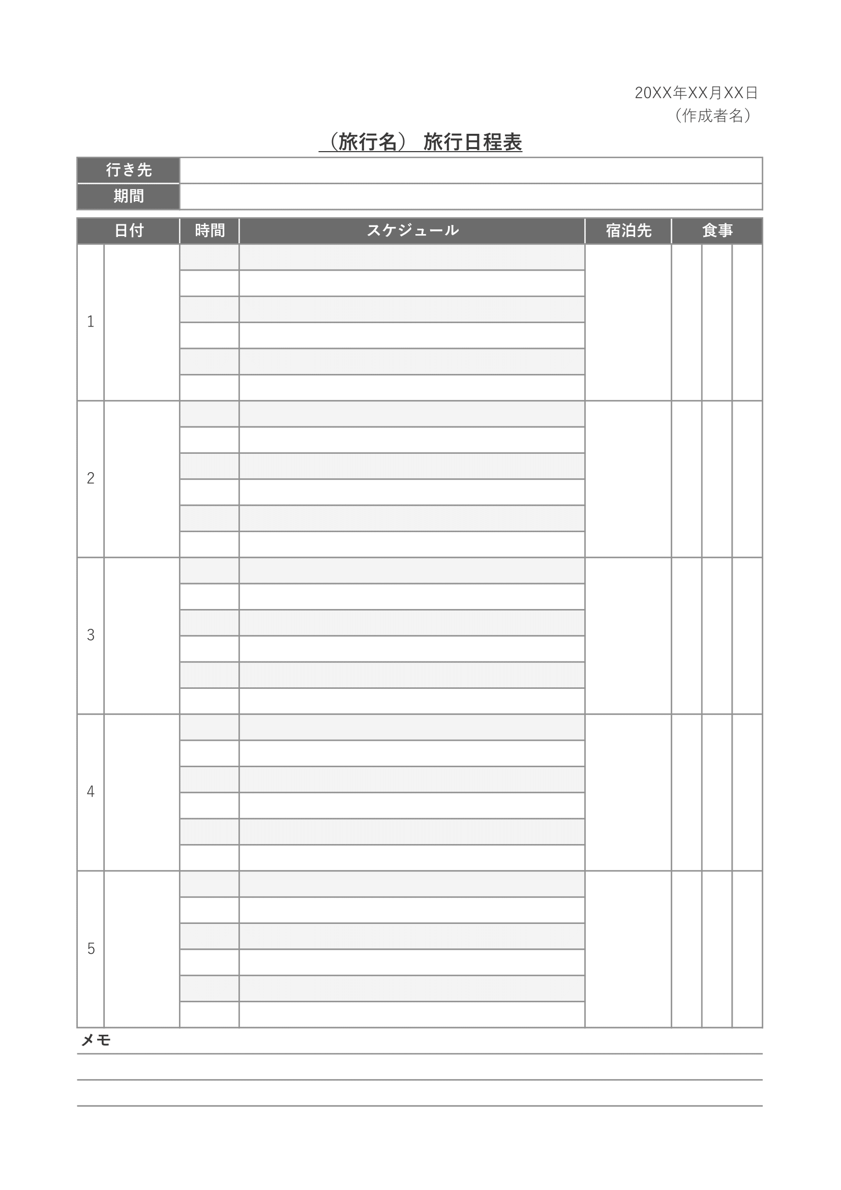 旅行日程表 旅程表 エクセルテンプレートを無料ダウンロード自分で国内外のオリジナル旅行を企画してみよう。