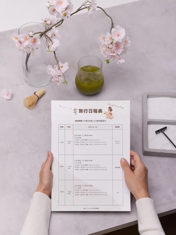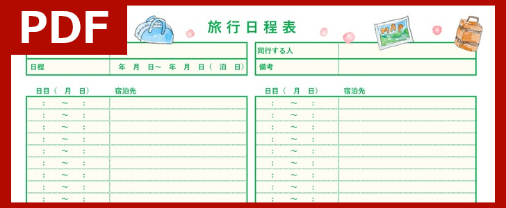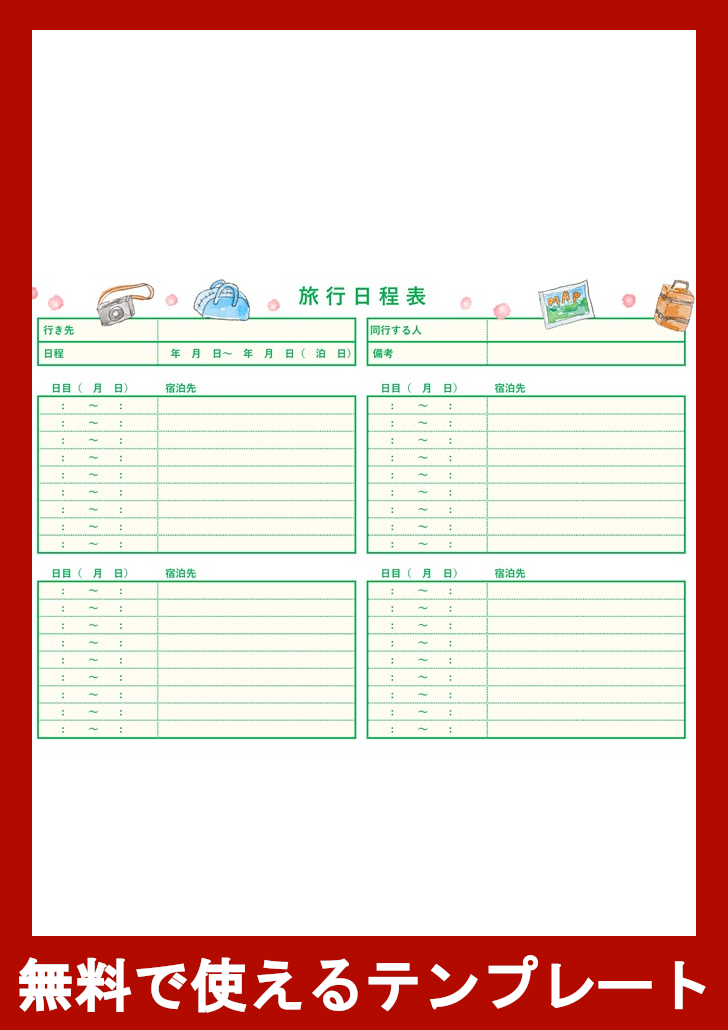 旅行日程表 かわいい&おしゃれな旅のしおりと行程表 観光やお出かけに作成・Excel・Word・PDFの無料テンプレートをダウンロード。