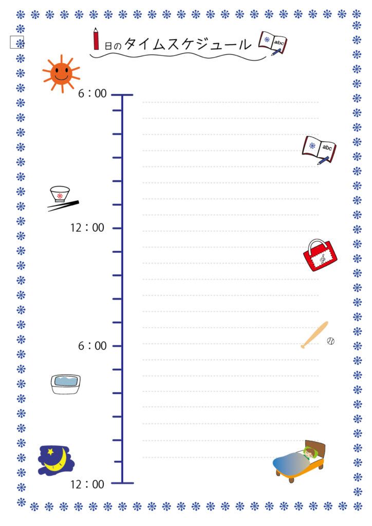 1時間単位で予定を書き込める1日のタイムスケジュール表・おしゃれなイラストデザイン付きで イラストボックス「プレミアム」テンプレート。