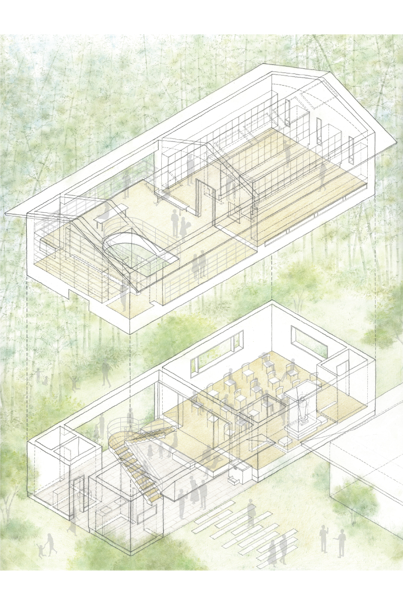 竹林寺納骨堂~ 手描きスケッチ - ono設計室ブログ。