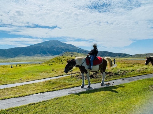 熊本女子旅熊本阿蘇の草千里で乗馬体験!展望所から烏帽子岳や米塚、雲仙普賢岳も見える!? 熊本観光。