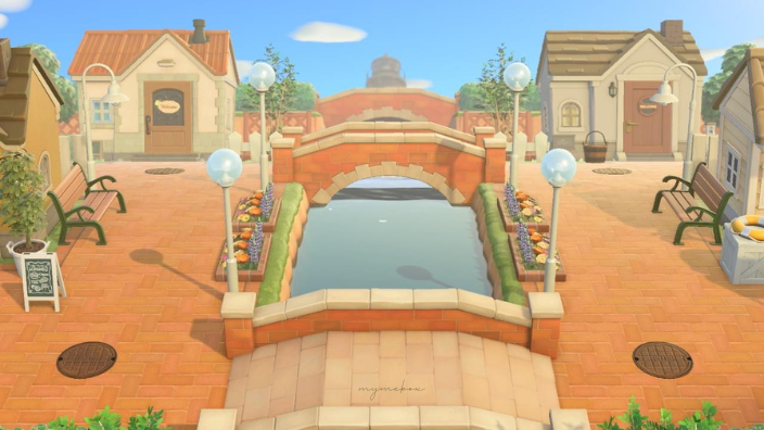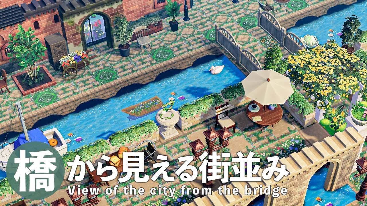 あつ森 川沿いの住宅街のレイアウト~レンガの橋を使った洋風な街並み~ - マイミーボックス。