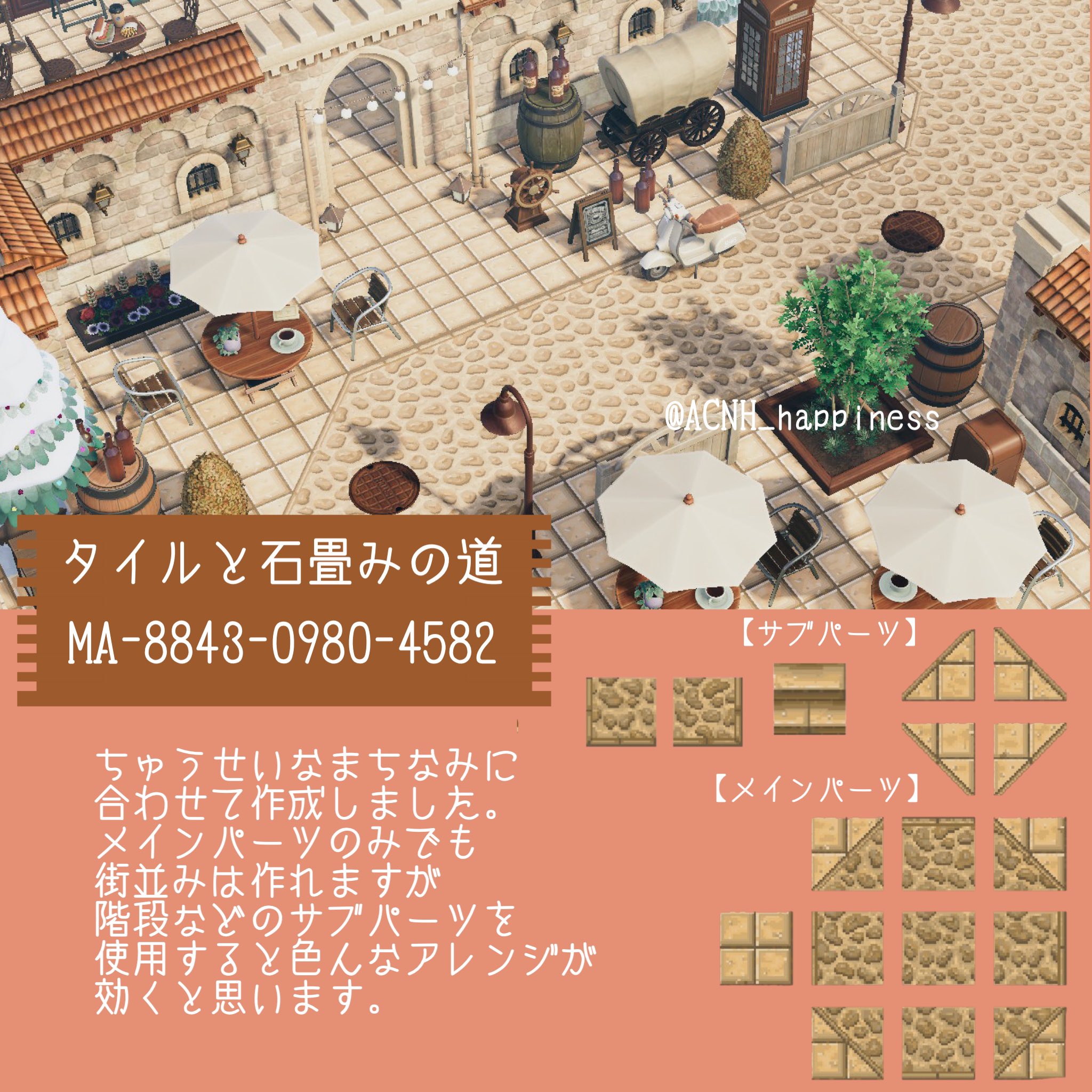 フランスなどのヨーロッパの街並みを参考にして、石造りの窓のマイデザを作りました🖼 何種類か作りましたので色々組み合わせて使ってみてください🙌また、ポルトガルの模様の入った石の道を参考にして、以前配布したコブルストーンのマイデザに模様パーツを追加しました。