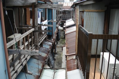 月島の木造長屋群も失われつつありそうだ建物・温泉コレクション。