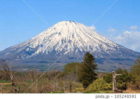 北海道京極町、望羊の丘から眺めた羊蹄山 5月 の写真素材105248591- PIXTA。