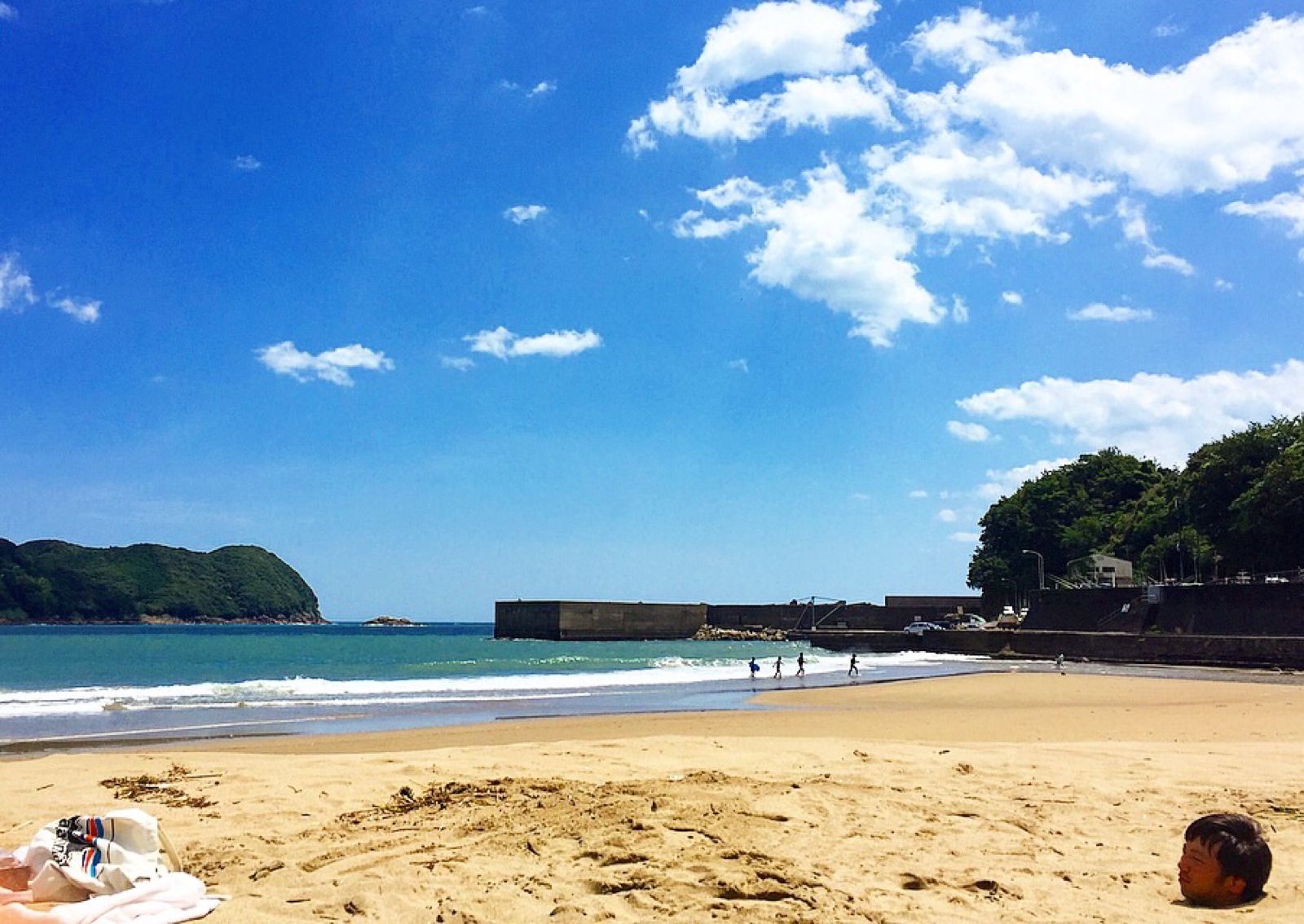 熊野大花火大会の前日は大泊海水浴場で海水浴を楽しみましたThe day before the。
