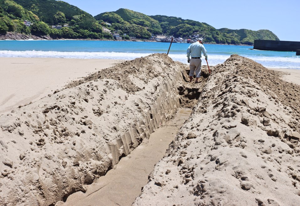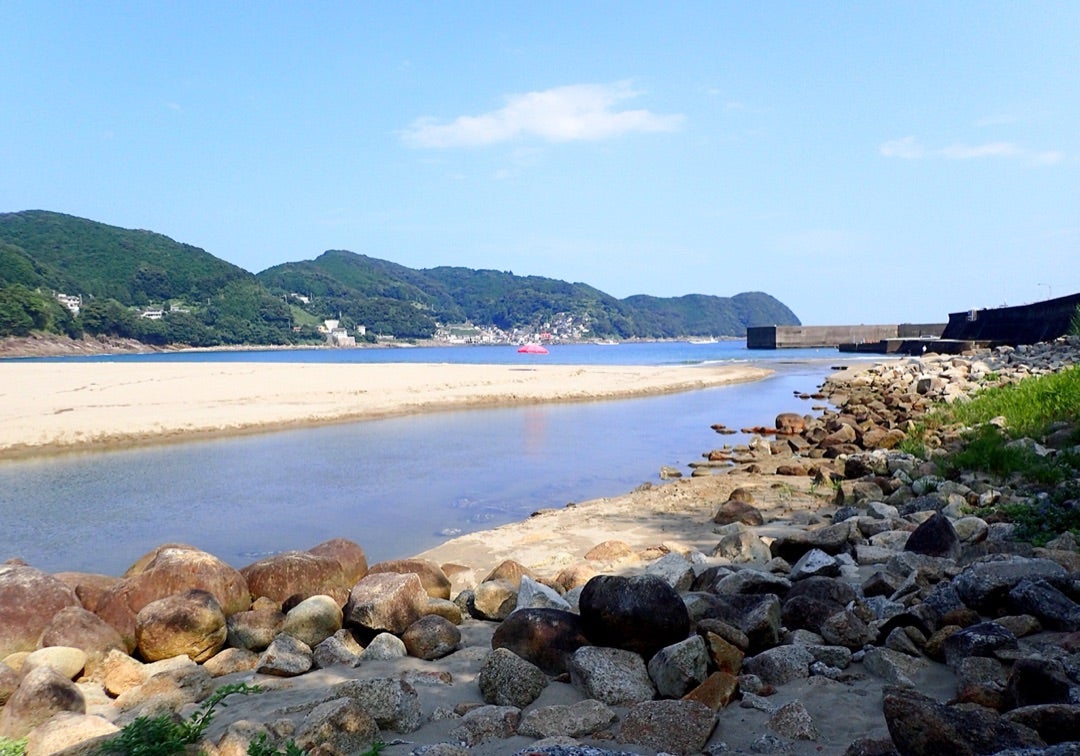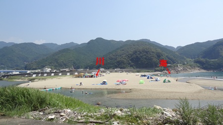 宮川が再び大蛇行 ウミガメ来やすい浜に 大泊海水浴場。