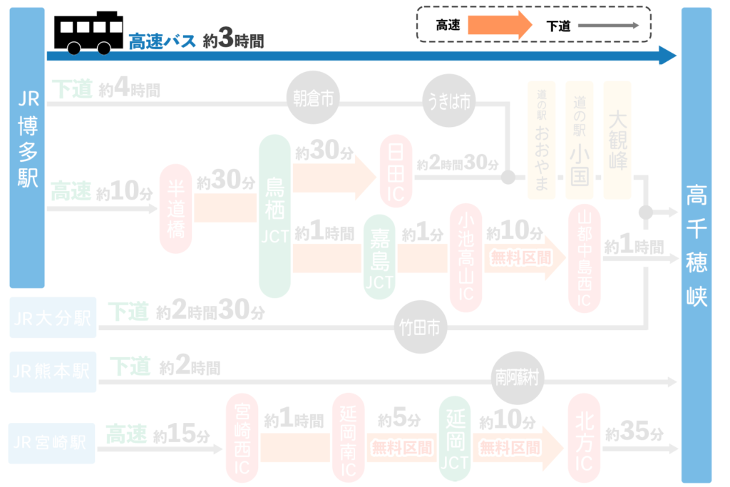 延岡・日向・高鍋発 ~ 高千穂行きの高速バス・夜行バス予約 バス比較なび。