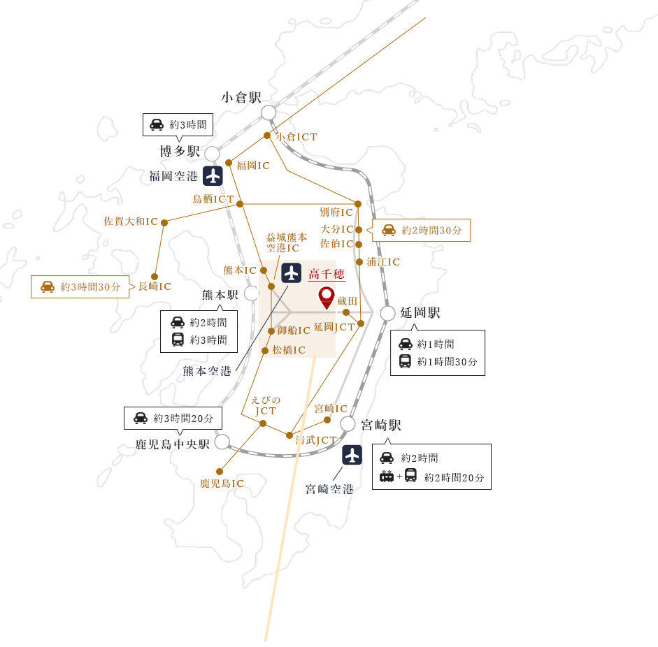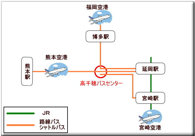 高千穂 高千穂峡など へのアクセス車、バス、電車、飛行機など。