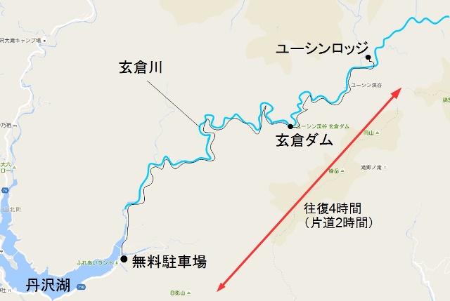 玄倉バス停-ユーシン渓谷 往復コースの地図・登山ルート・登山口情報YAMAPヤマップ。