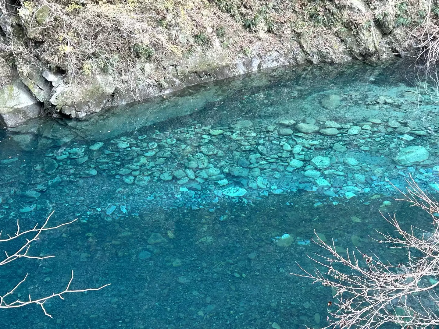ユーシンブルー2025-2-7, 玄倉バス停裏 駐車場から玄倉林道にてユーシンロッジまで往復。,諸事情で激しい運動禁止なので、このコースで楽しみます。, 久しぶりの丹沢エリアで素晴らしいユーシンブルーを観ることができました。勝浦栄次Facebook。