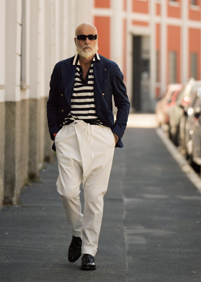 スナップ実例 新イタリアオヤジは「ダブルジャケットの着流しに白!?」メンズファッションLEON レオン。
