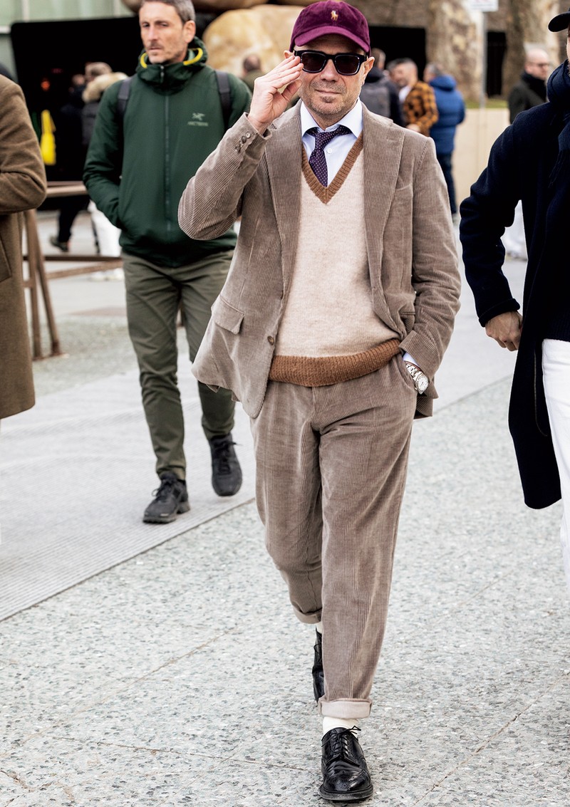 イタリアっぽい茶を活かし、トーンをそろえた着こなし ミラノお洒落スナップMEN'S EX ONLINE。