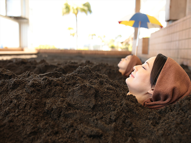 鹿児島の大地から沸き上がるパワー!波の音を聴きながら入る、指宿市「砂むし温泉 砂湯里」九州の観光情報はFeel Kyushu。
