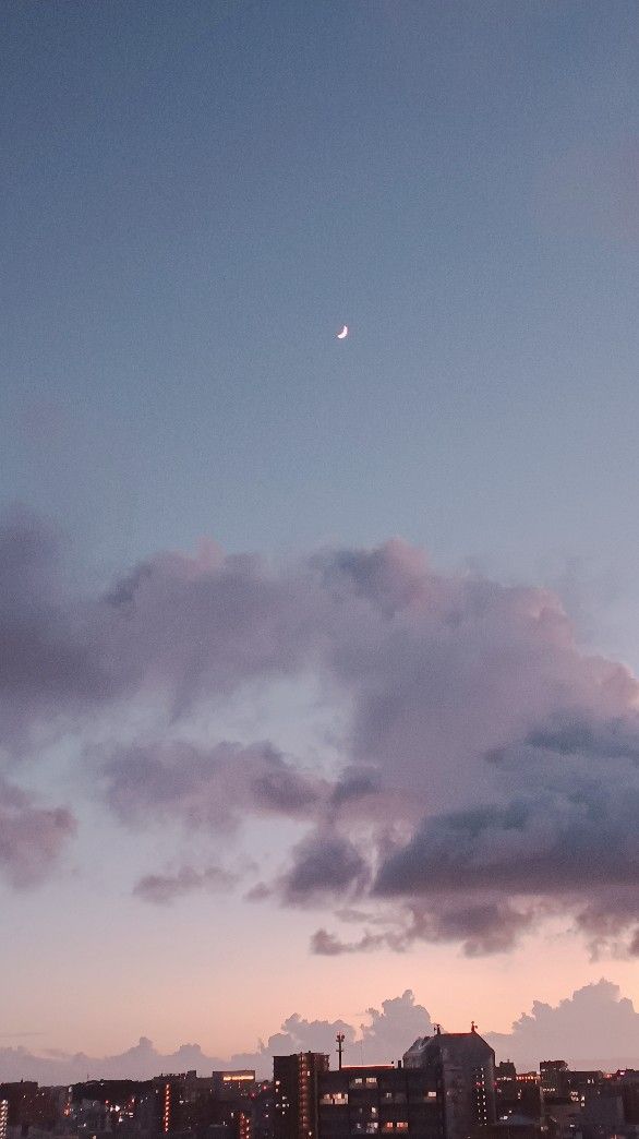 月と電線が映える夜景の韓国風おしゃれ壁紙イラスト・フリー素材なら「シンテリ」。