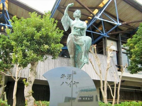 牛深港フェリー発着場にハイヤ娘モニュメントお知らせ牛深プチ散歩。