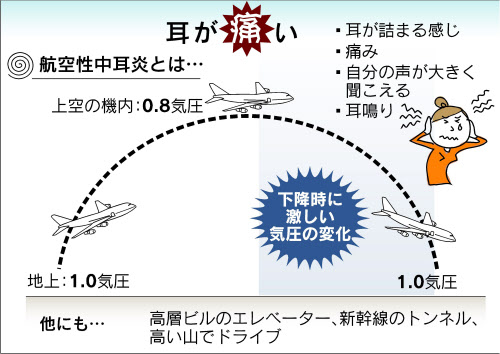 飛行機に乗ると耳が痛い 航空性中耳炎、秋冬は要注意 -。