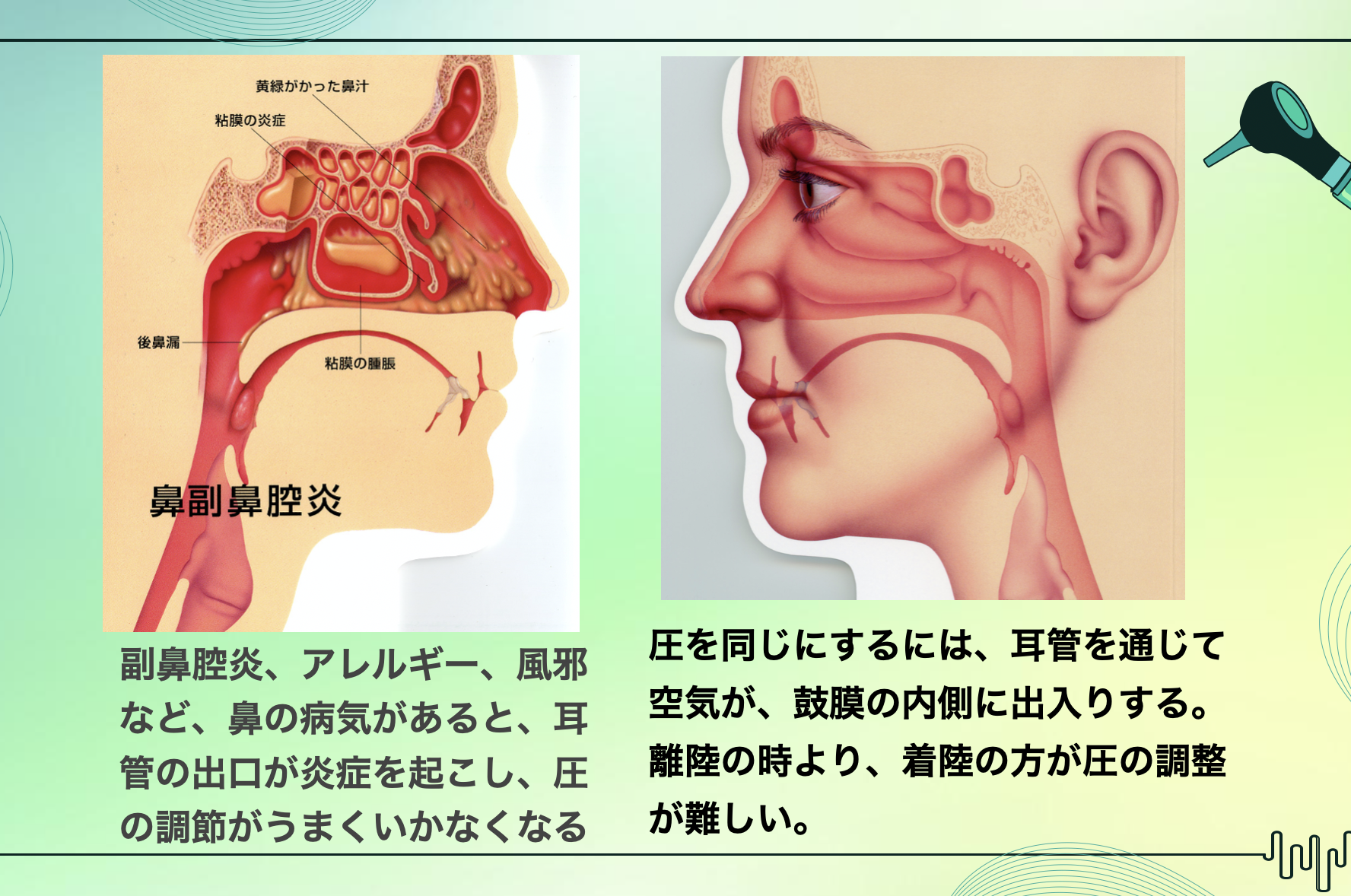 夏休みの旅行シーズンが到来しましたね🍉 この時期、多くの方が飛行機での旅行を計画しているのではないでしょうか✈️☁️新しい場所を訪れるのはとても楽しみですが、飛行機に乗る際に気を付けたいのが「航空性中耳炎」です! 特にお子様や風邪気味の方は注意が必要。