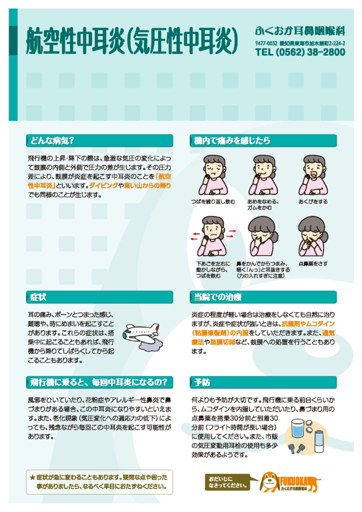 航空性中耳炎 - 愛知県東海市の耳鼻科ふくおか耳鼻咽喉科耳 ・鼻・のど、いびき 無呼吸症候群。
