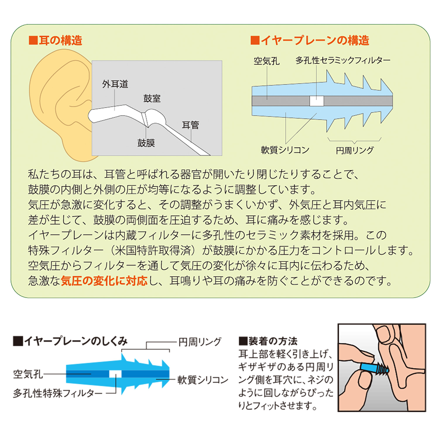 気圧変動対応耳栓 earplanes イヤープレーン‐耳栓 耳せん。