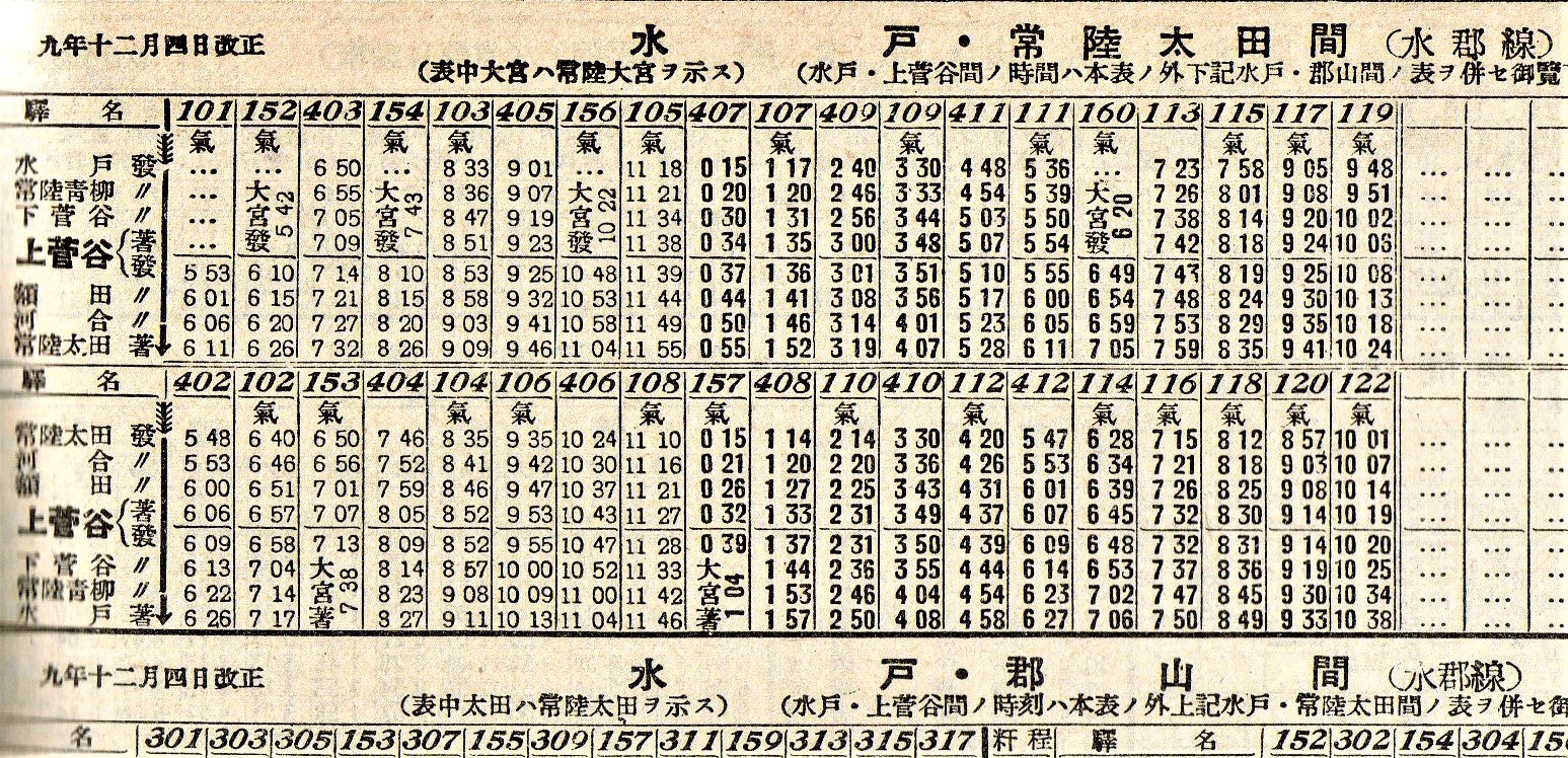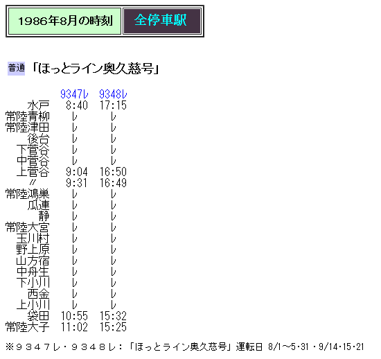 JR水郡線 上菅谷-常陸太田常陸太田09:15発 水戸行 の停車駅 時刻表。
