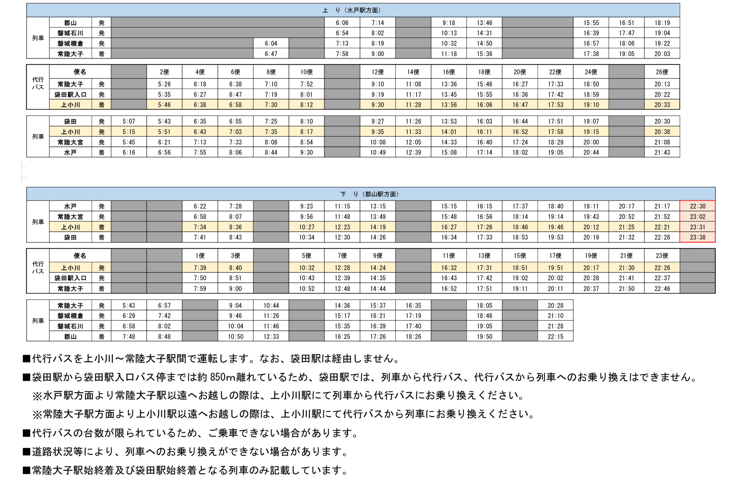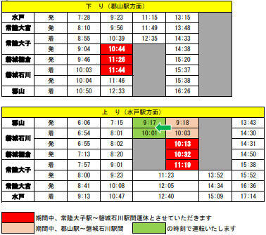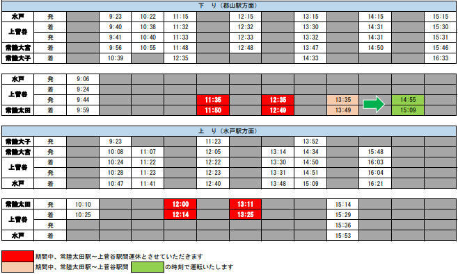 水郡線 上菅谷~常陸太田間 昼間集中工事・列車運休。
