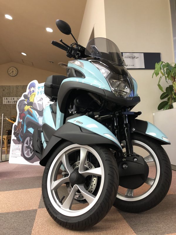 ゆるキャン△」主人公の志摩リン仕様のヤマハ製TRICITY トリシティ がやって来ました!道の駅こぶちさわ。