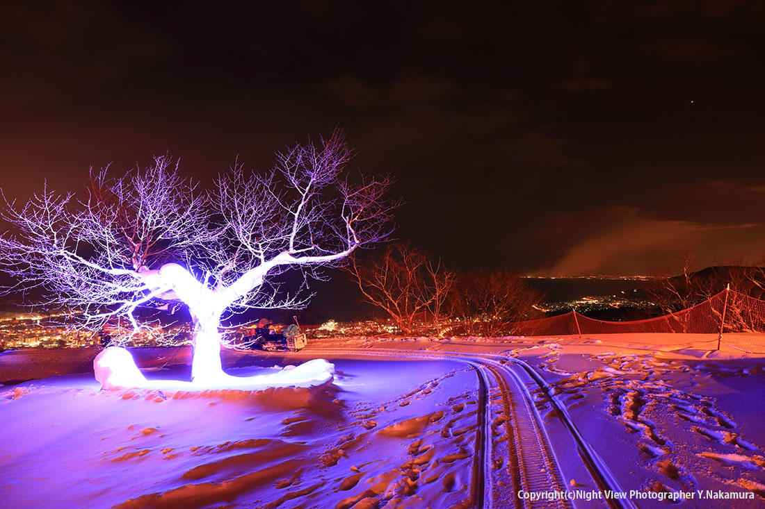 夜景と雪あかりのコラボ!外国人で賑わう天狗山会場。