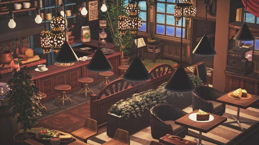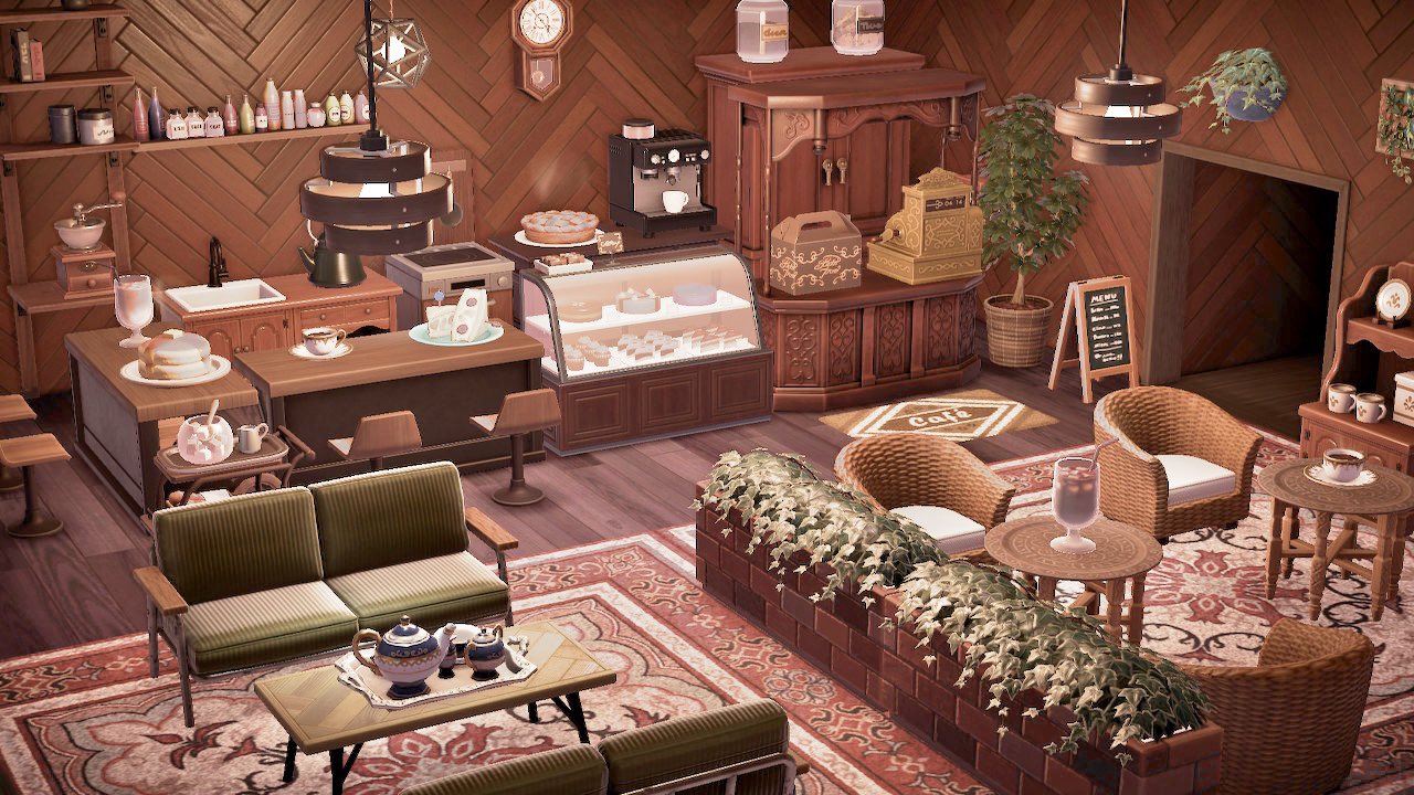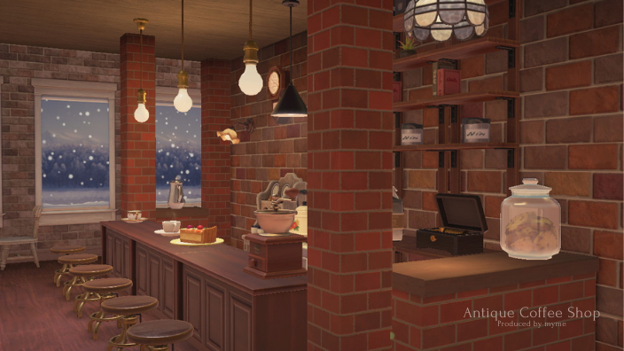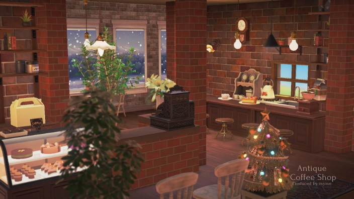 あつ森・ハピパラ カフェのレイアウト~アンティークなコーヒーとケーキのお店~ -。