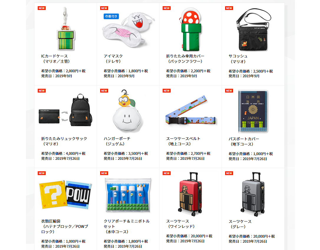 任天堂販売から「スーパーマリオ トラベルグッズ」の新商品12種類が2019年7月26日、2019年9月に発売決定!Nintendo Switch情報ブログ。