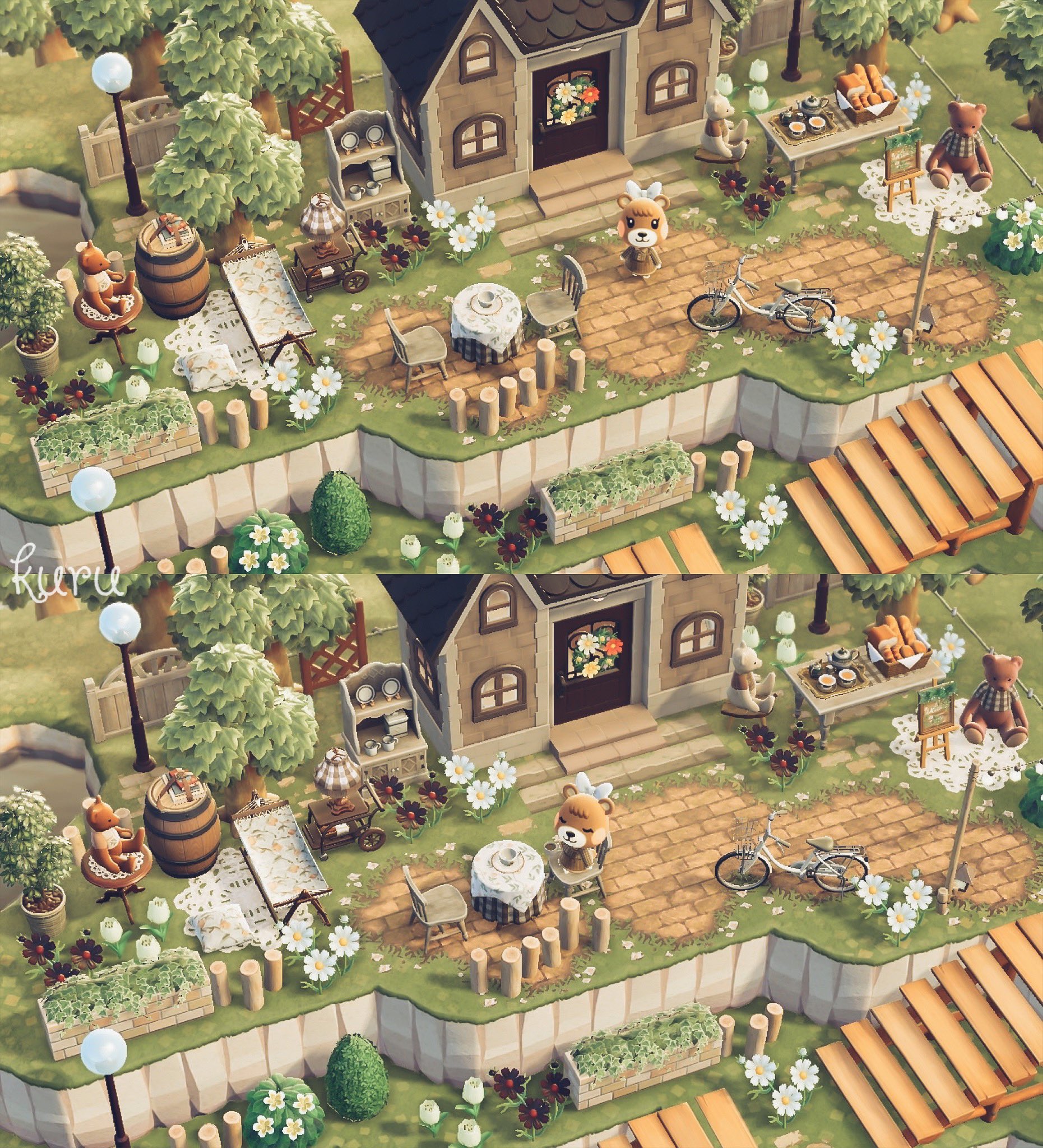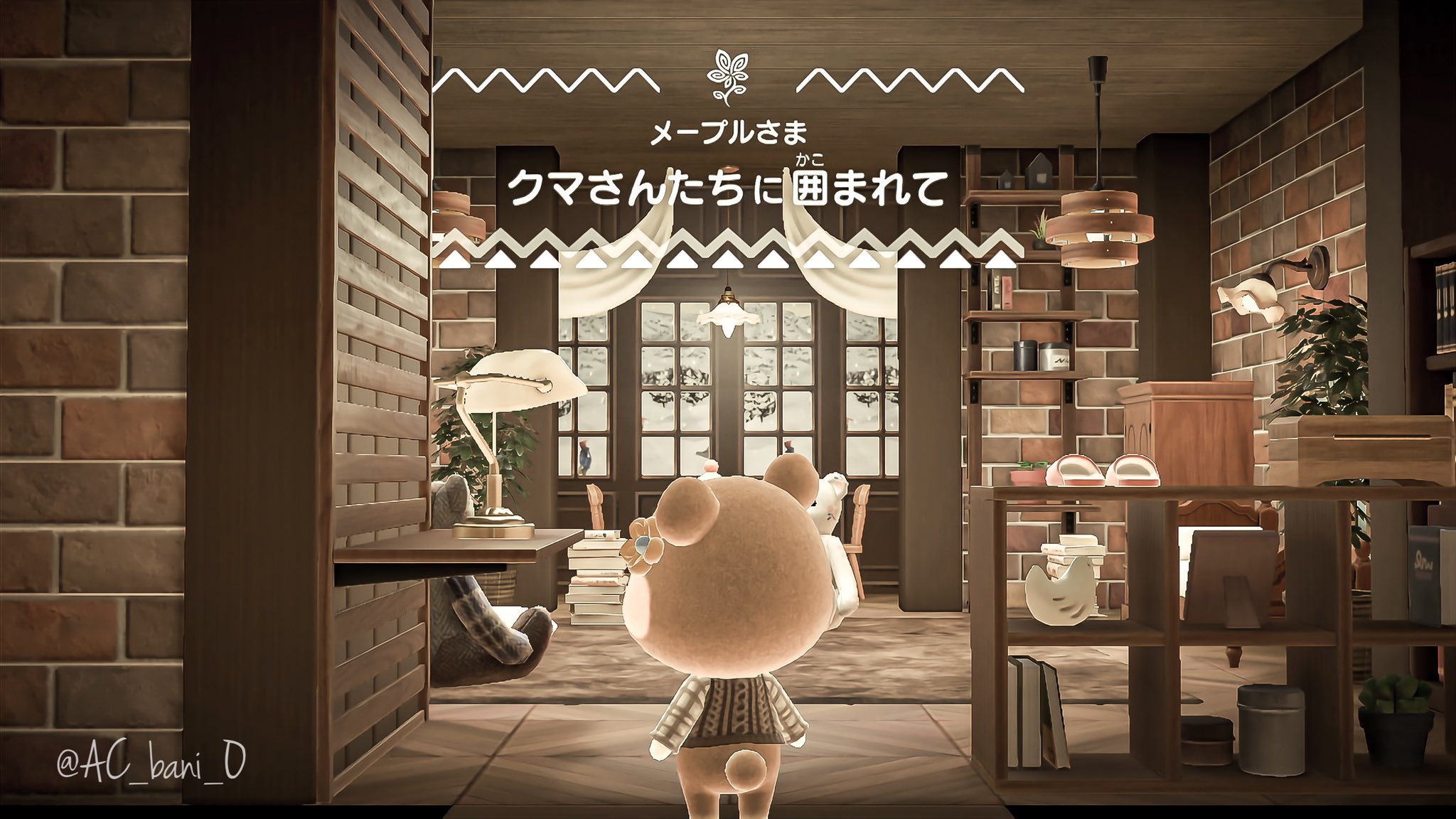 メープルちゃんの別荘 . インテリアほんとに苦手だけどメープルちゃんのために頑張った🥲あんまり本人の部屋と変わらないけど🥲壁紙も大きさも同じだとほんとに似ちゃうね外観がむちゃくちゃに気に入ってる💭♡ 早くモックァ島の住民の外観も変えたいな。
