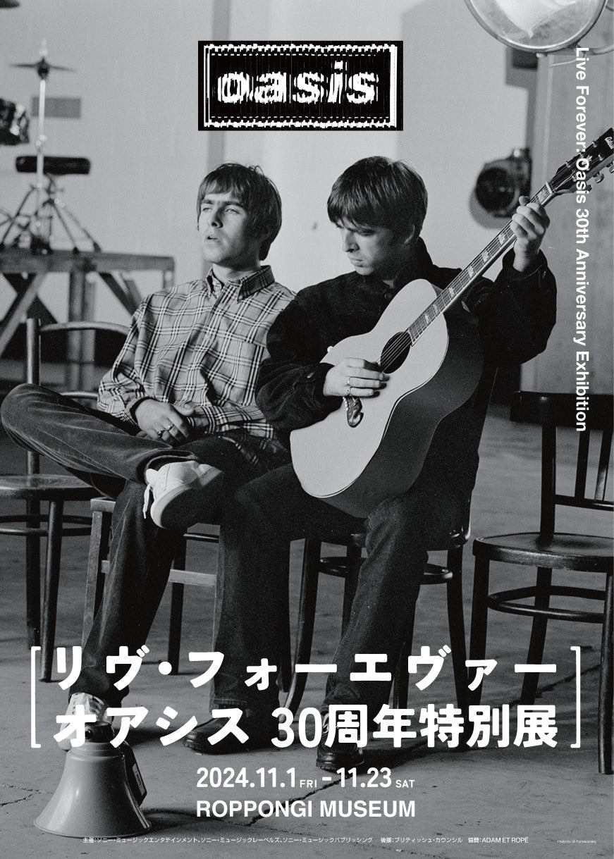 オアシス:デビュー30周年を記念した展覧会 『リヴ・フォーエヴァー:Oasis 30周年特別展』が、11月1日より六本木ミュージアムにて開催決定!!河村康輔氏によるバンドの新ロゴも発表。株式会社ソニー・ミュージックエンタテインメントのプレスリリース。