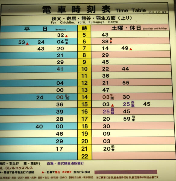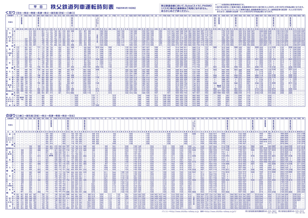 西武秩父駅到着時刻表 最新2023年3月改正版Rail Log。