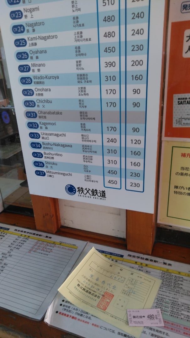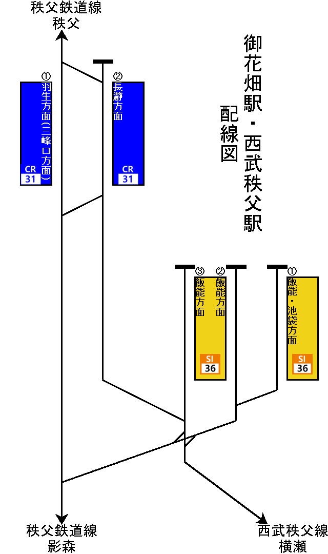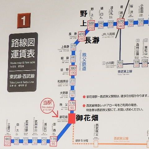 乗り換え 西武秩父線、西武秩父駅から秩父鉄道、御花畑駅へ。 Seibu-Chichibu。
