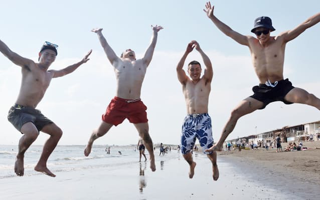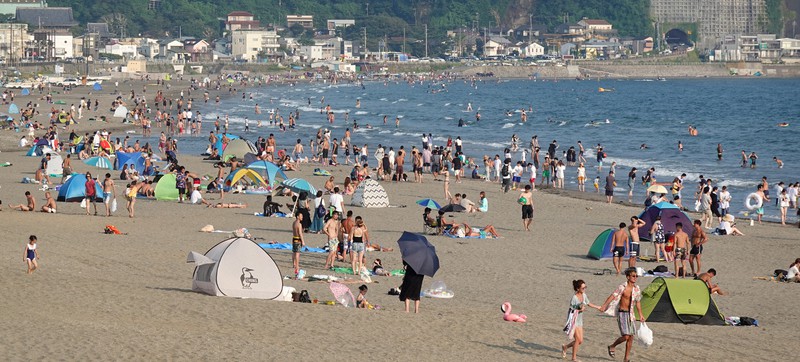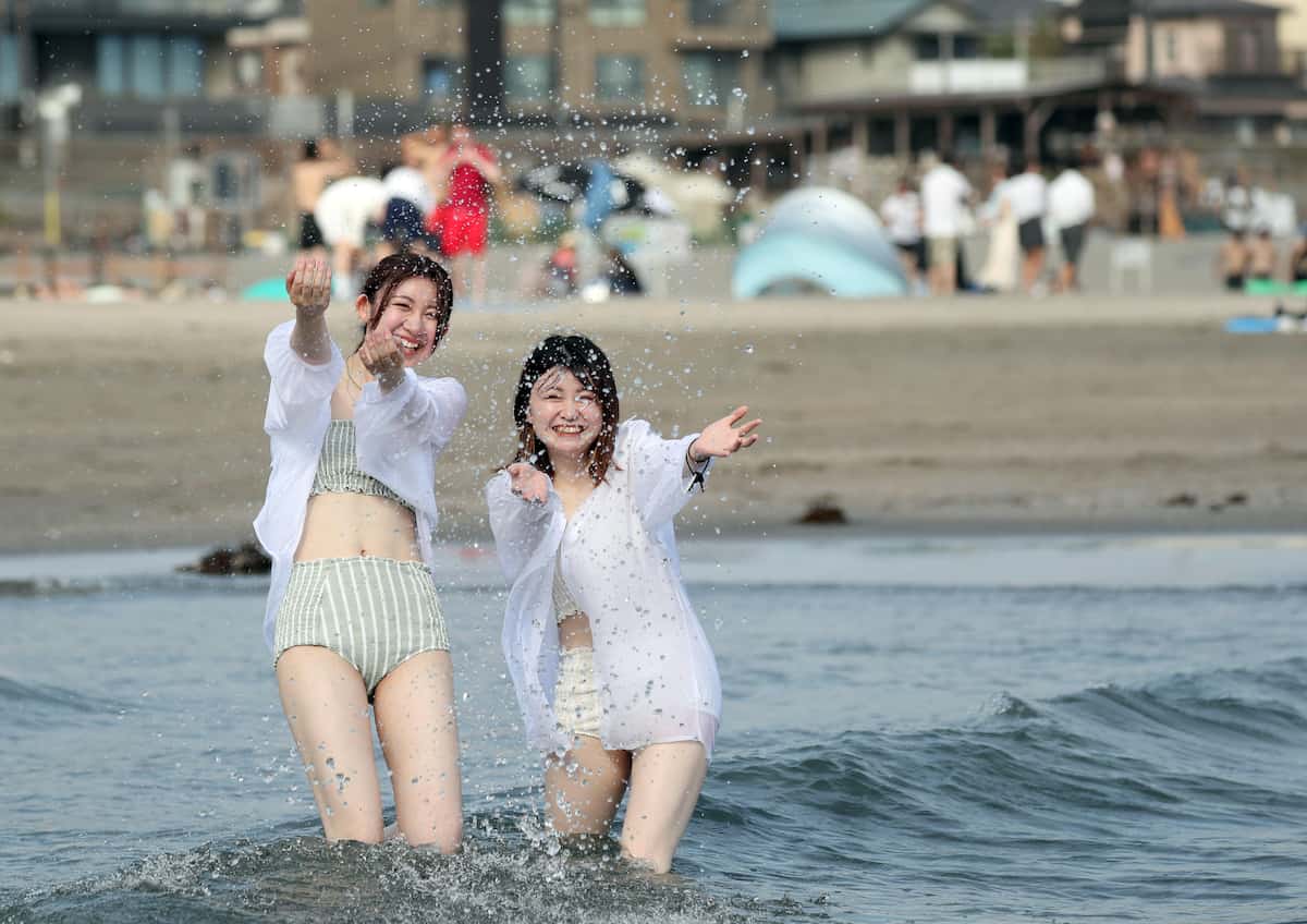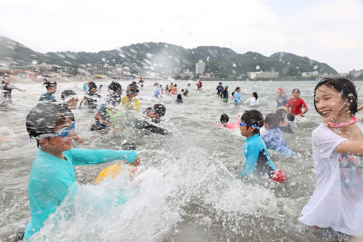 フォト マスクなしの海開き、大はしゃぎ 神奈川・逗子海水浴場 -。