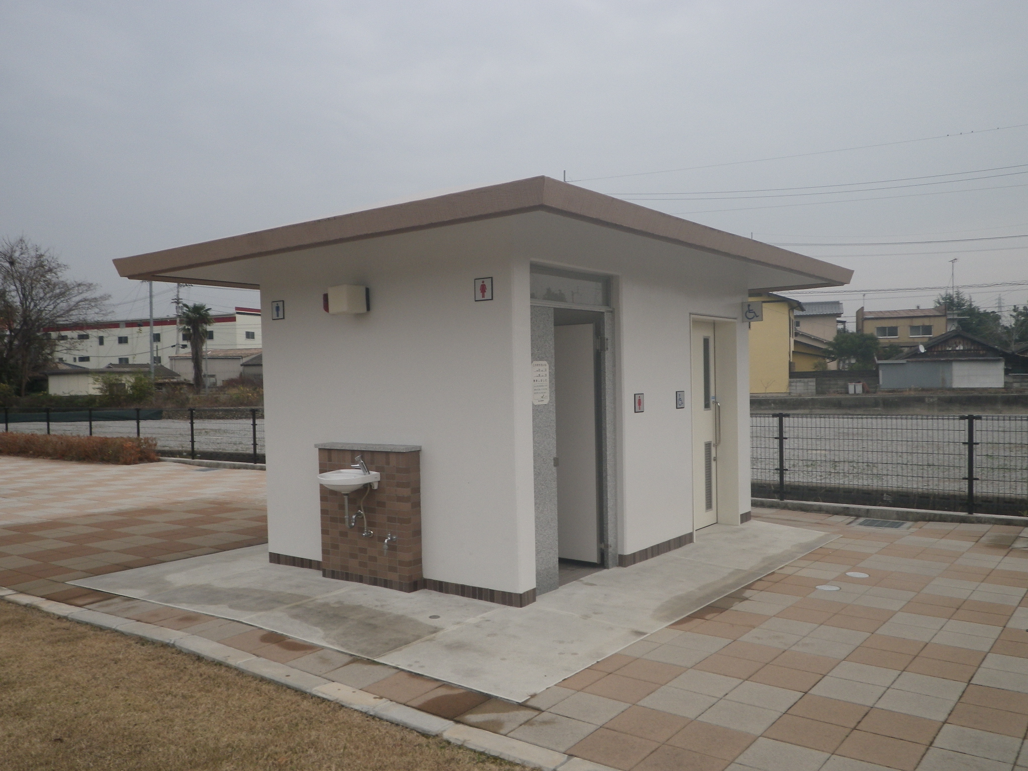 三重県 松阪市総合運動公園に3連の大型トイレを設置しました信建工業株式会社。