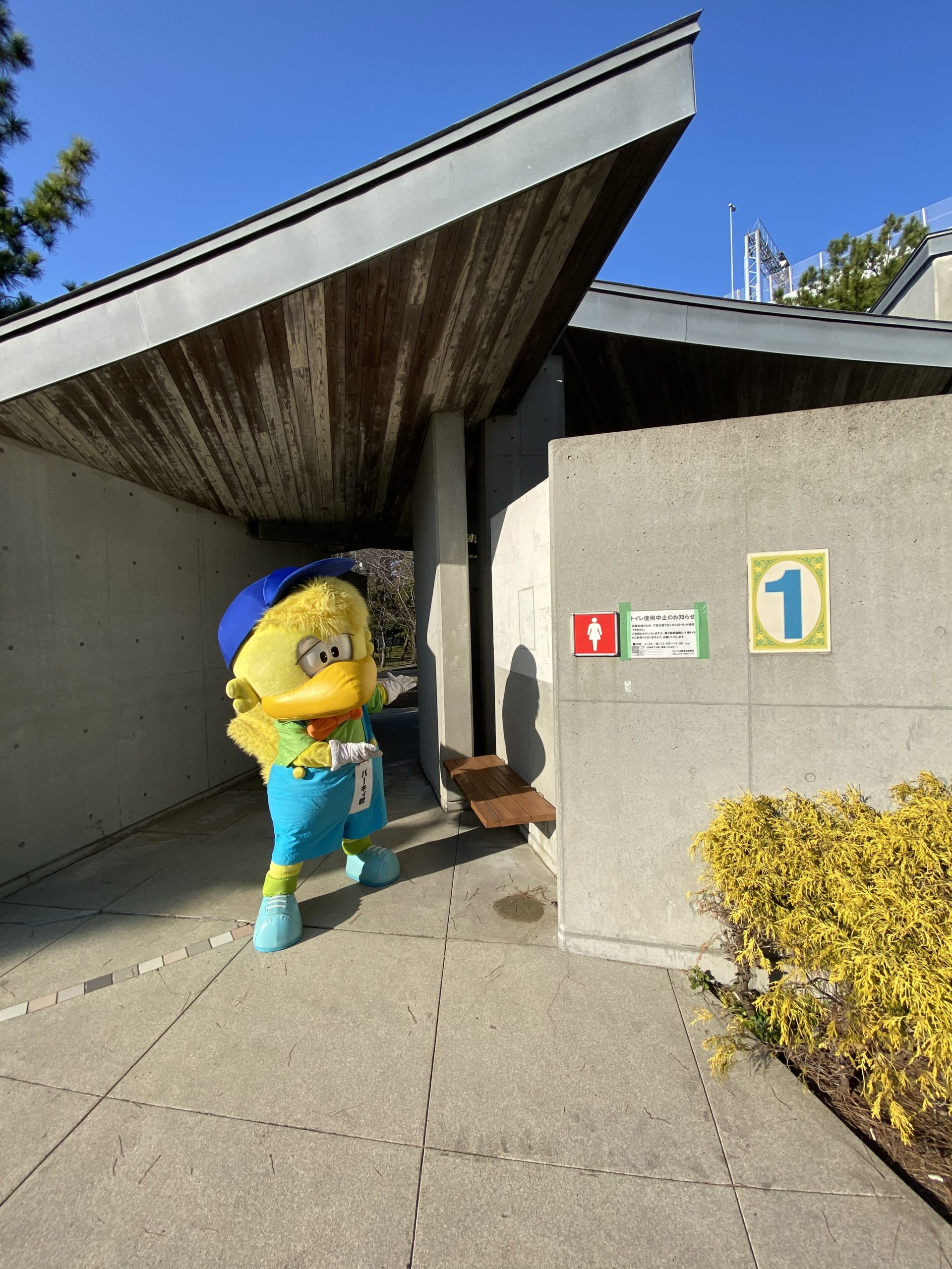 ばんこが行く!: 災害に強い昆陽池公園トイレが竣工。