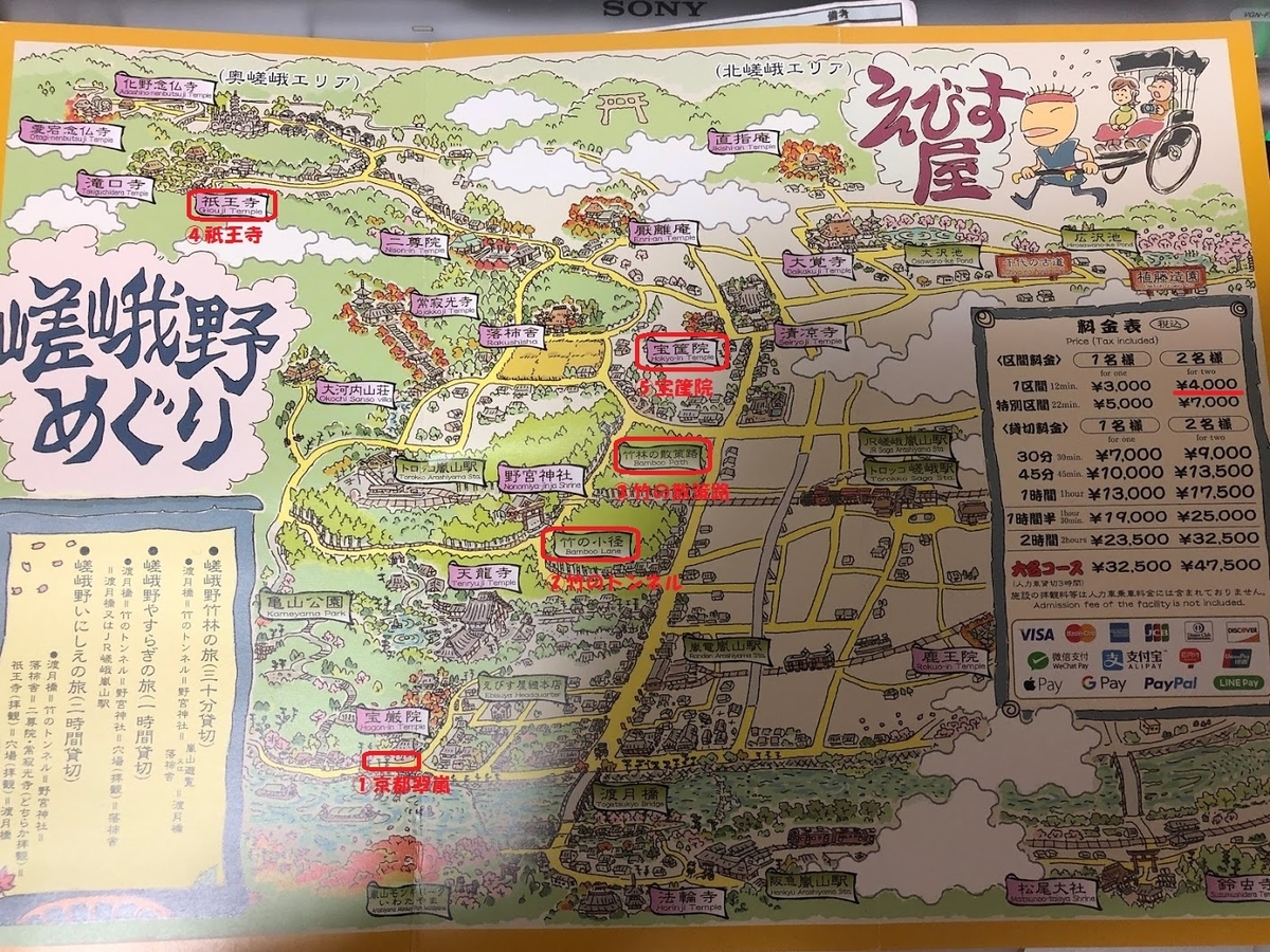 嵐山の人力車一覧 料金 割引 &コース 所要時間or乗り場。