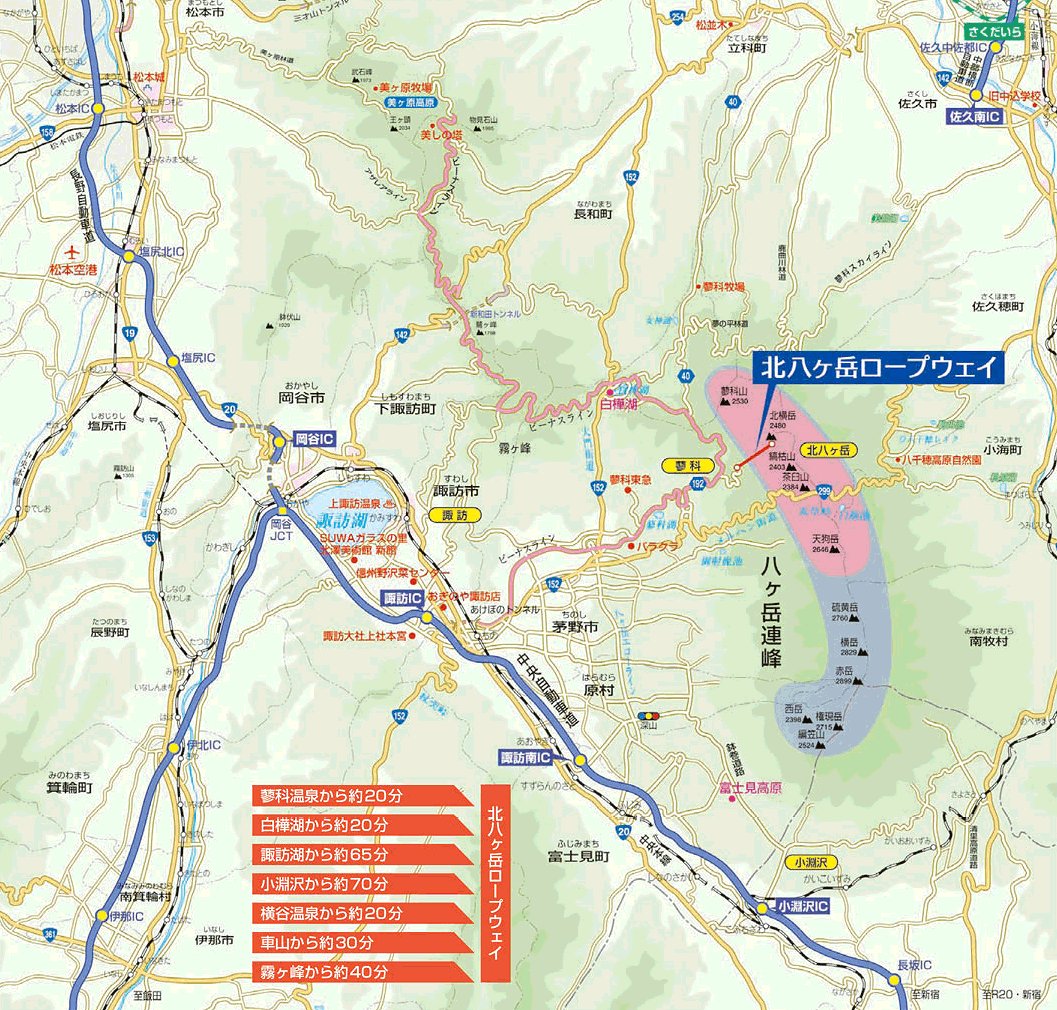 北八ヶ岳ロープウェイアクセス・駐車場蓼科、八ヶ岳の観光スポット・トレッキング・バリアフリ。
