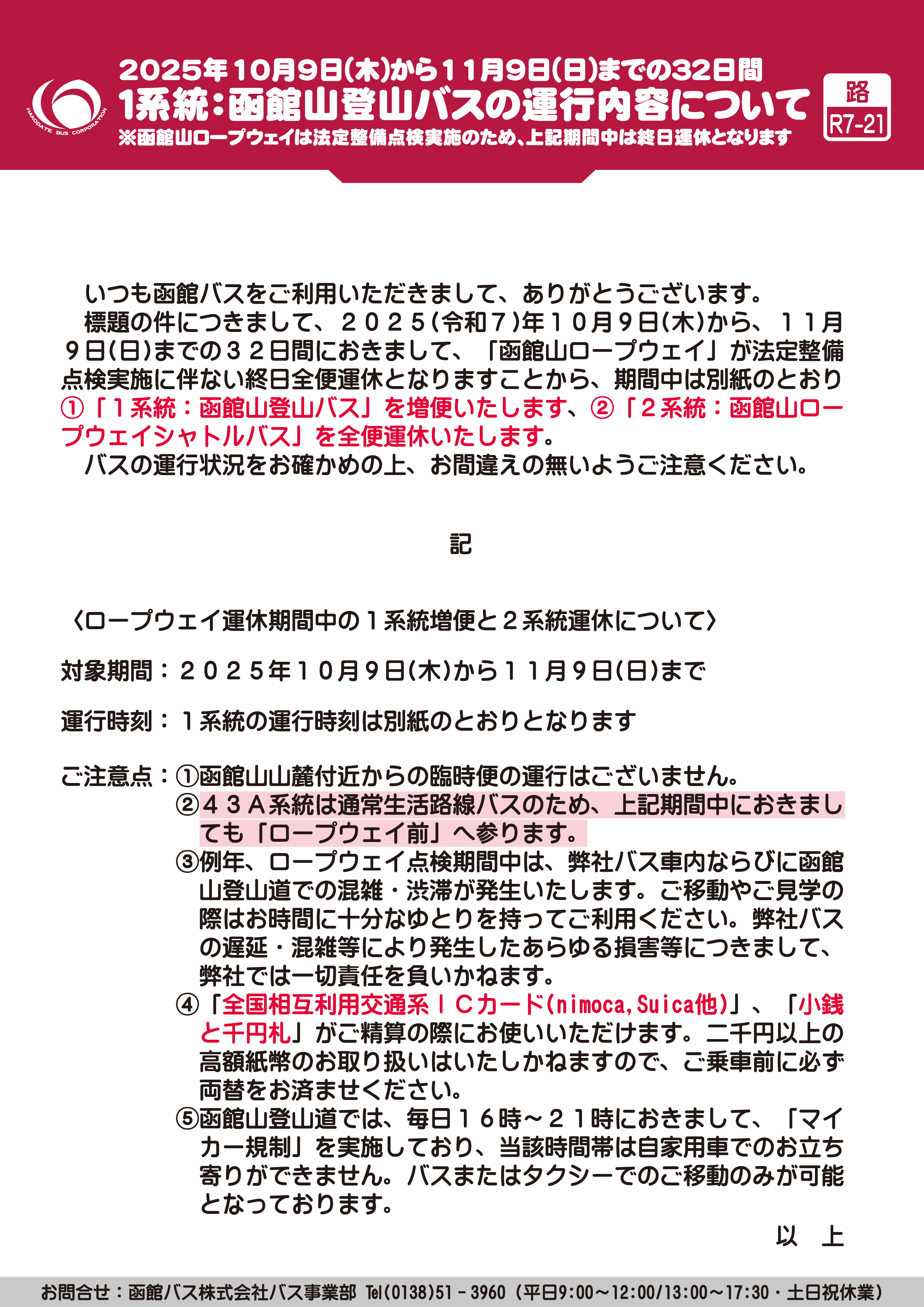 こんばんは🌇 ラビスタ函館ベイでございます 11月11日から函館山ロープウェイの運行が 再開されます🚡 それに伴いロープウェイ乗り場までのシャトルバスも運行されますので、ご案内致しますまた、11月11日。