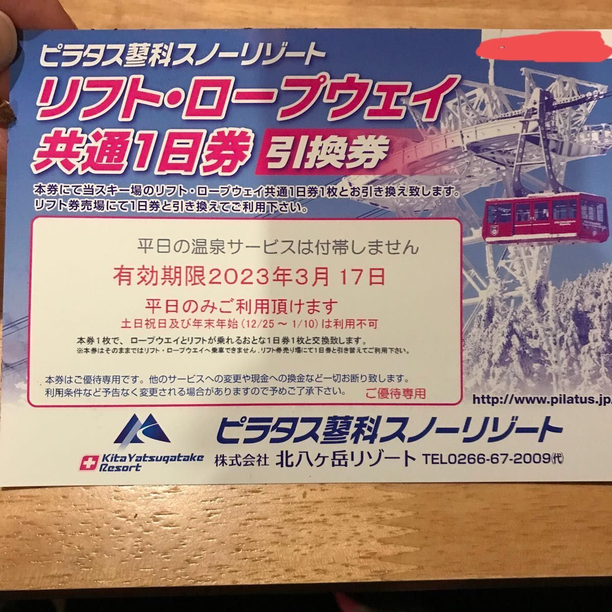 ピラタス蓼科スノーリゾート 北八ヶ岳ロープウェイ 割引券Yahoo!フリマ 旧PayPayフリマ。