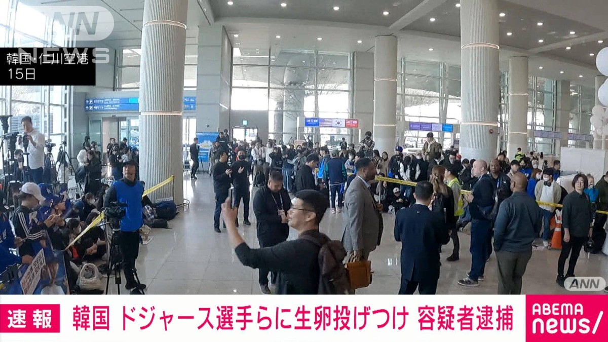 韓国 ドジャース到着で“生卵投げ”容疑者逮捕 「何で外国人選手を歓迎しなければ 」。