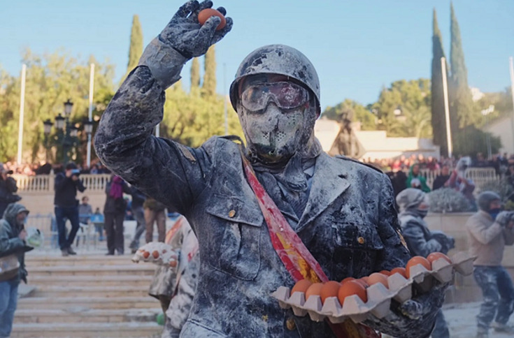 軍服を着て小麦粉と卵を投げ合うスペインの奇祭「エルス・エンファリナッツ」カラパイア。