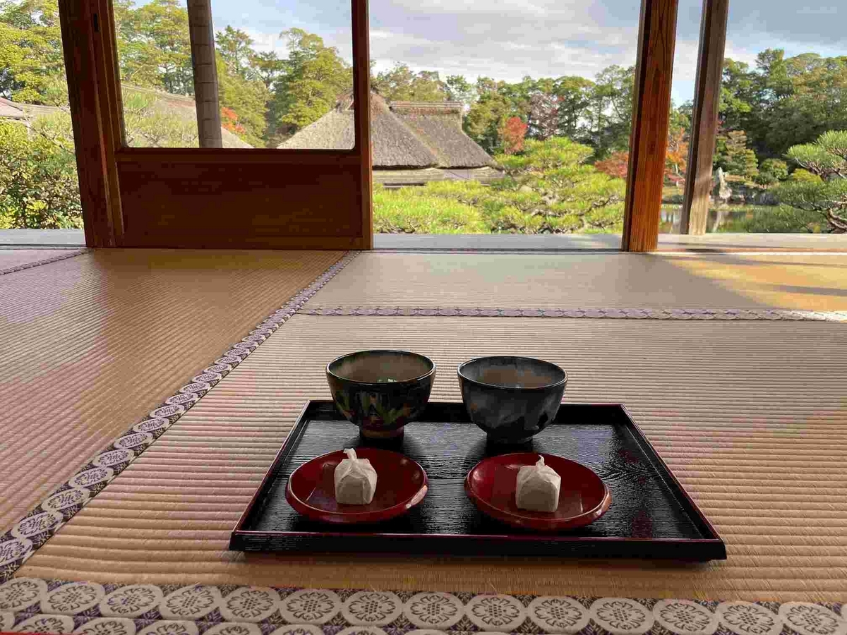 彦根城のふもとの名勝『玄宮楽々園』で海外のお客様に抹茶体験。たった15分でも一座建立茶の湯サロンChanoyu Salon。