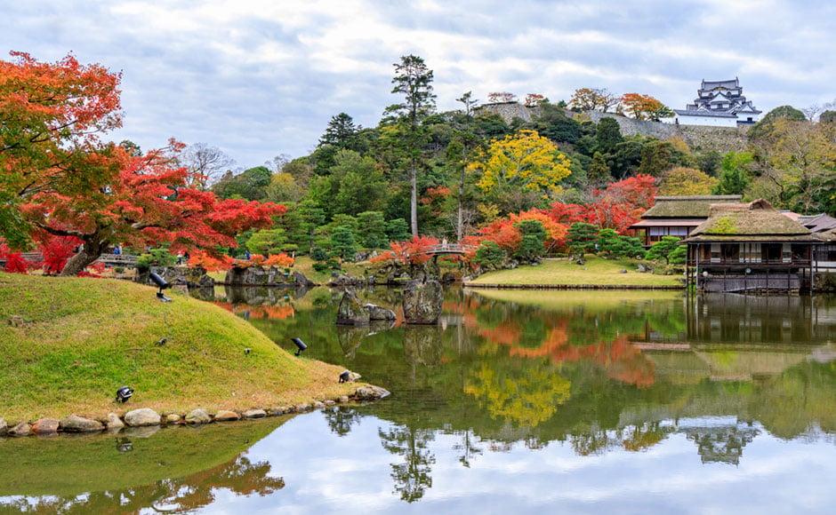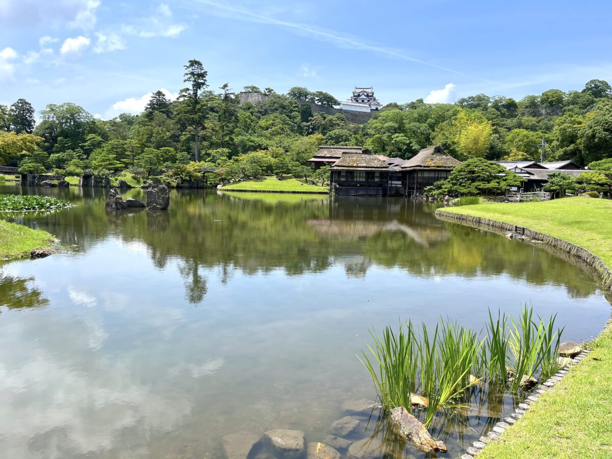 庭園を楽しむ:国宝・彦根城を借景にした、玄宮楽々園。