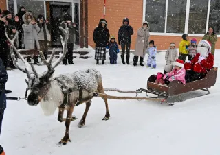 20241217 サンタ🎅がトナカイソリ🛷に乗ってやってきました こどもたちの目がキラキラしていました サンタさんは役場の職員さんですトナカイ観光牧場幌延町トナカイ観光牧場トナカイ。