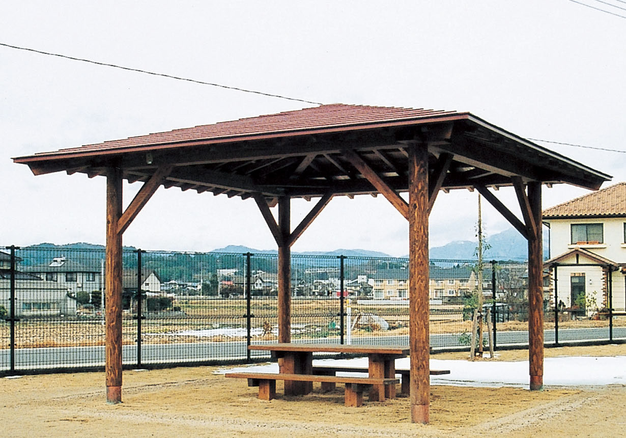OT2-AZ-0320 東屋 テーブル・ベンチ2基付大久保体器株式会社。