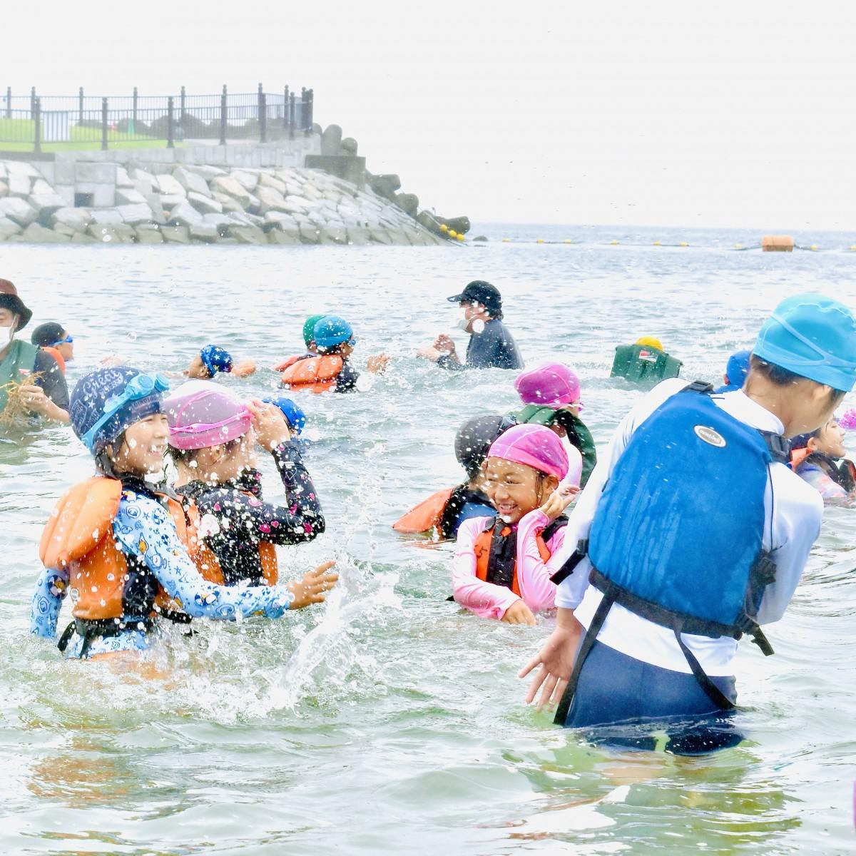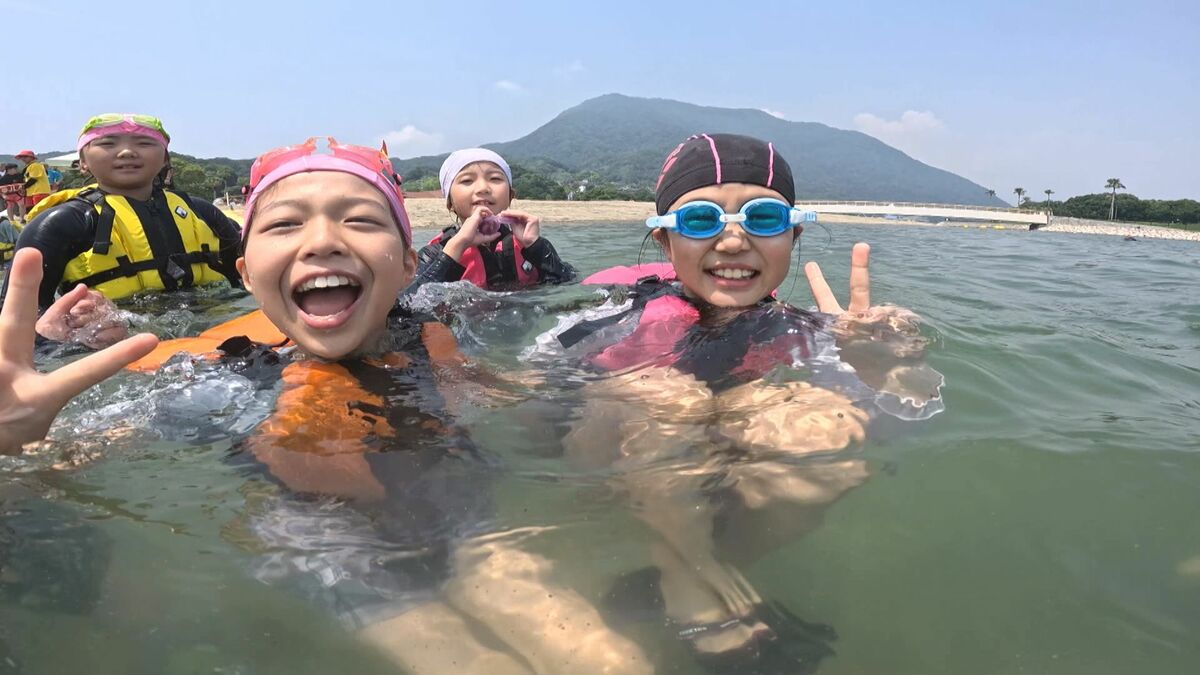 大分市の田ノ浦ビーチで海開き 神崎小児童が初泳ぎで笑顔 -。